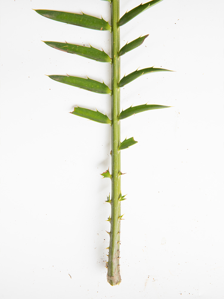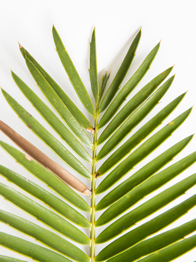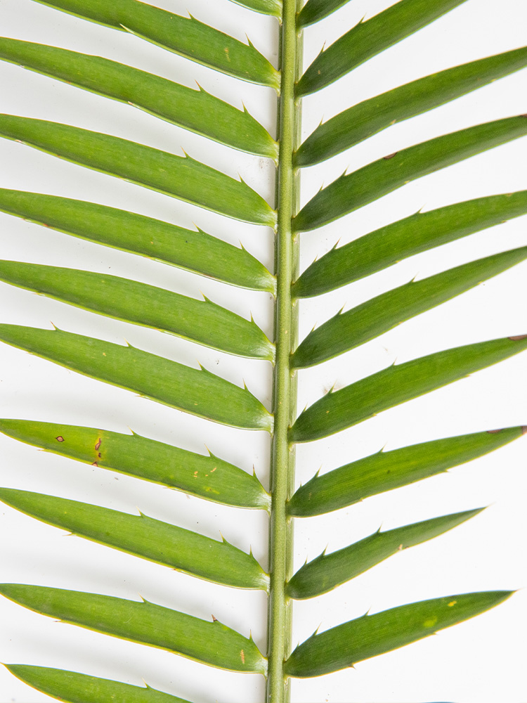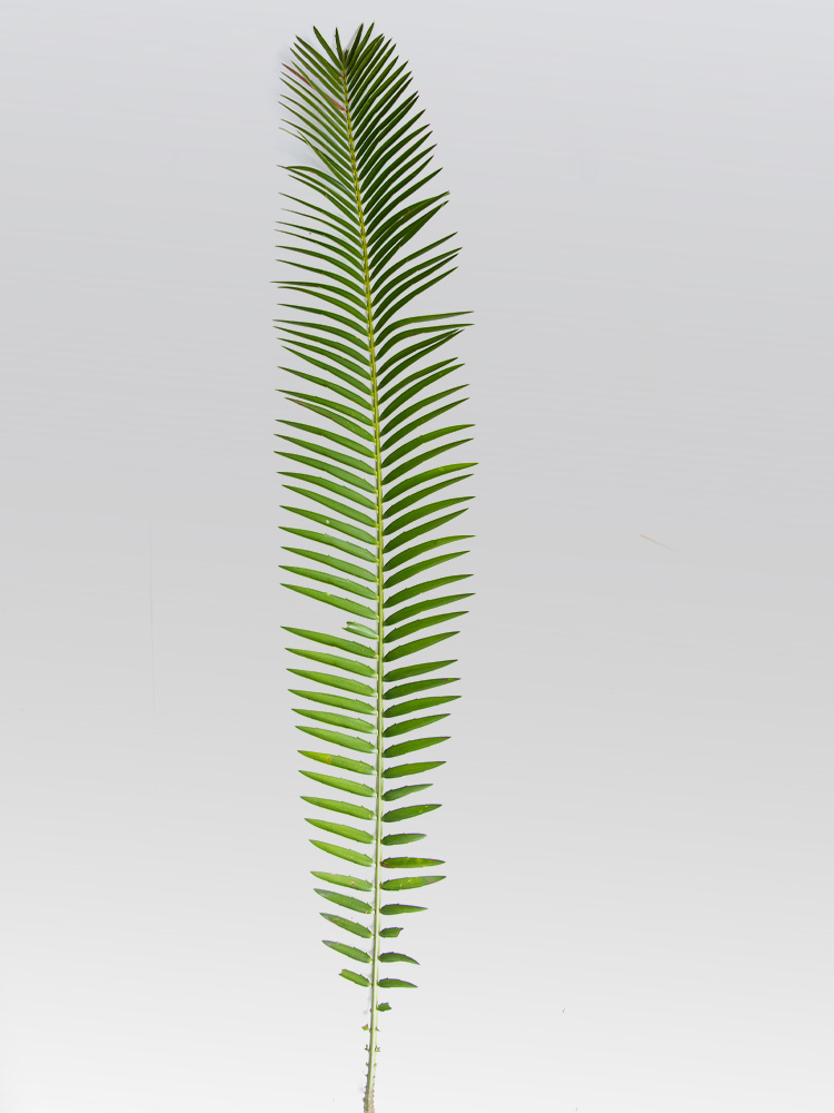 - Rachis is yellowish and leaflets shield one another more so to the leaf apex.